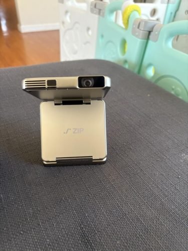 Usually, I would need to use a tabletop tripod to position my other projectors, or they would need an internet connection. With the ZIP, I can position it by adjusting the hinges, and then I connect to it using my phone's data or Wi-Fi connection.
